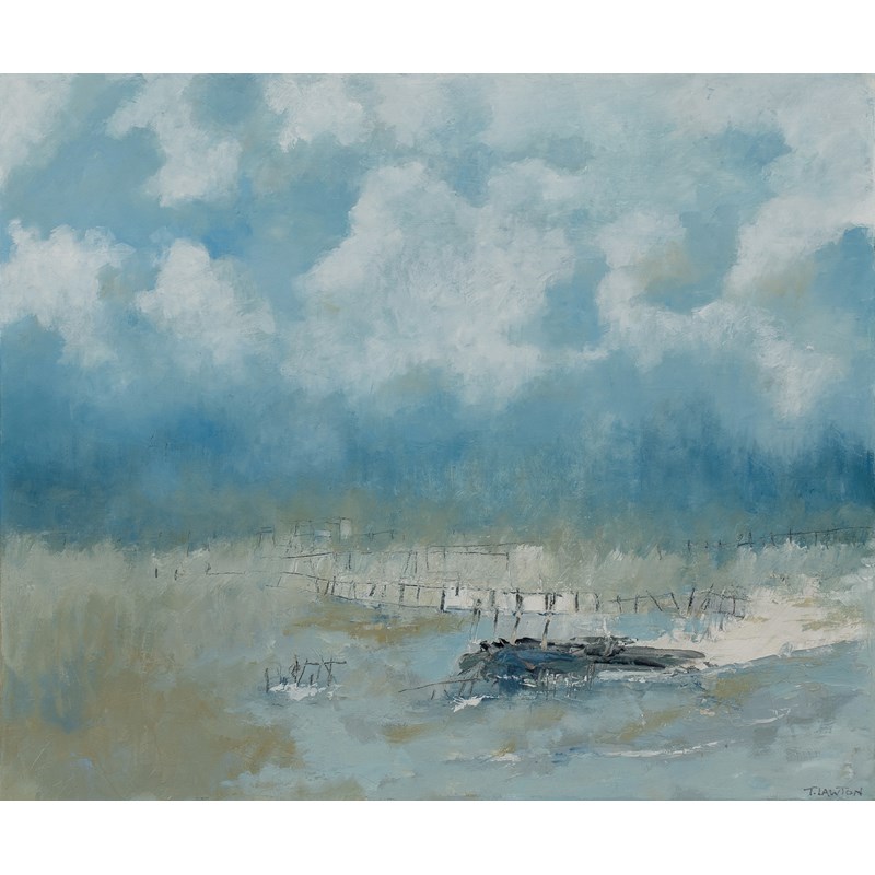 Signed T LAWTON (lower right), and further signed and inscribed 'Fluffy White Clouds'/Teresa Lawton (to backing board)