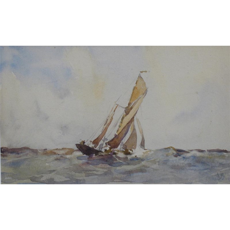 ARTHUR BRISCOE (1873-1943): A fishing smack in a swell, signed and inscribed, watercolour, 9 x 14cm (3.5 x 5.5in) ++ Good condition.