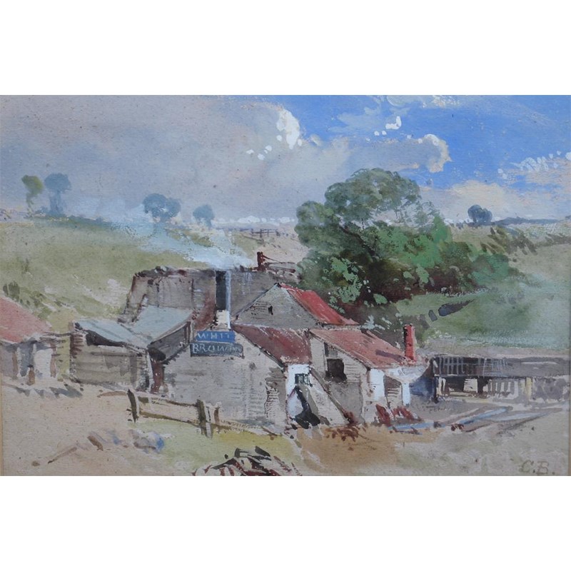 ATTRIBUTED TO CHARLES BRANWHITE (fl.1873-1899): Farm buildings, signed with intials, watercolour, 24 x 34cm (9.5 x 13.5in)