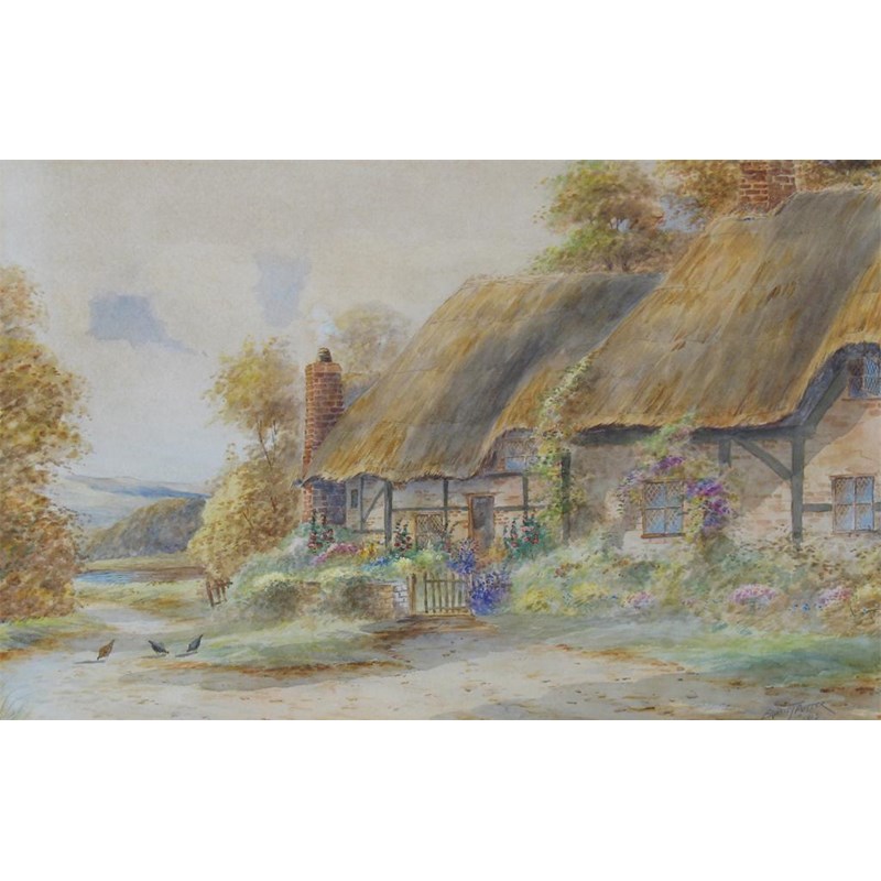 ERNEST POTTER (19th/20th century): A thatched cottage
