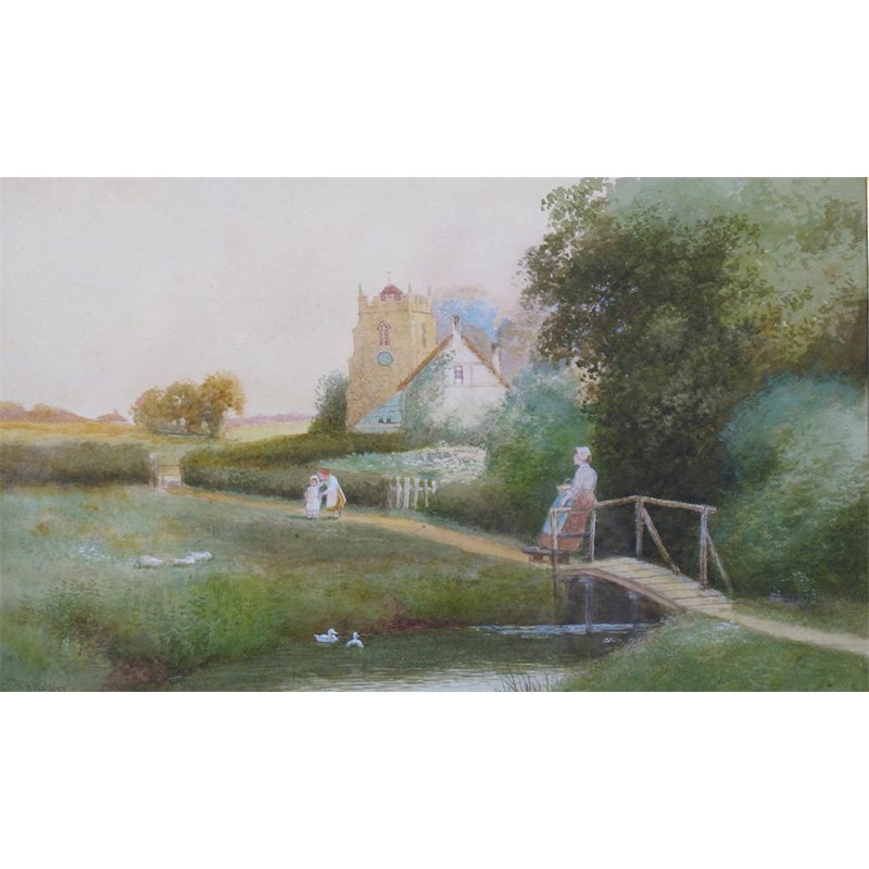 ROBERT HOLLANDS WALKER (fl.1892-1920): Figures in a village street