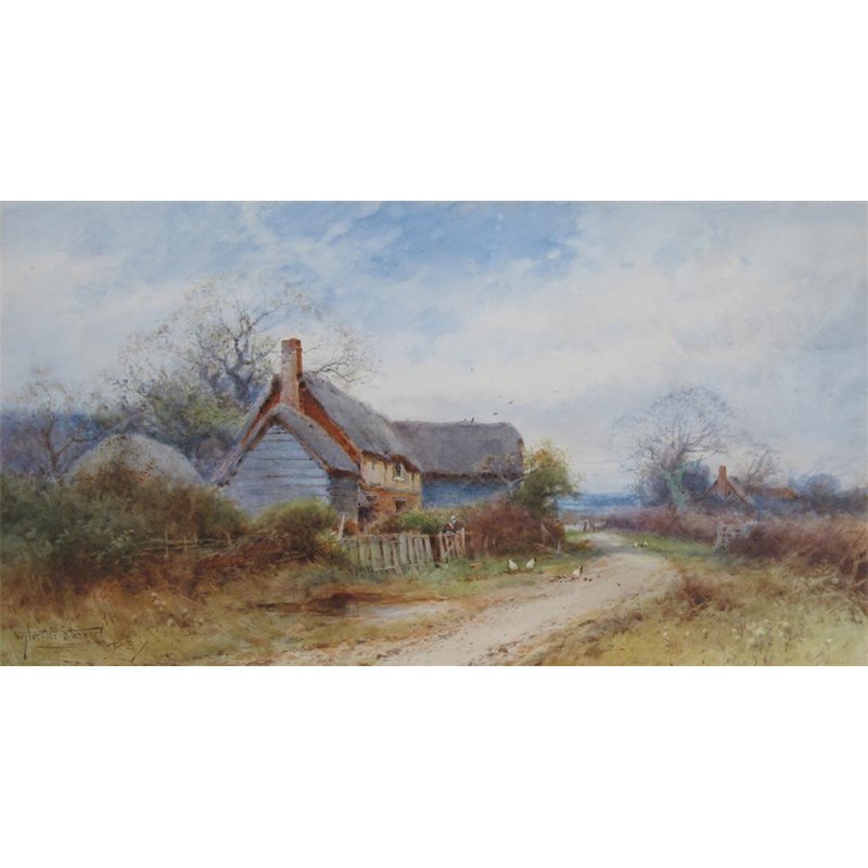 SYLVESTER STANNARD (1898-1947): A country lane with a thatched cottage, signed, watercolour, 33 x 60.5cm (13 x 23.75in) ++ Good condition.