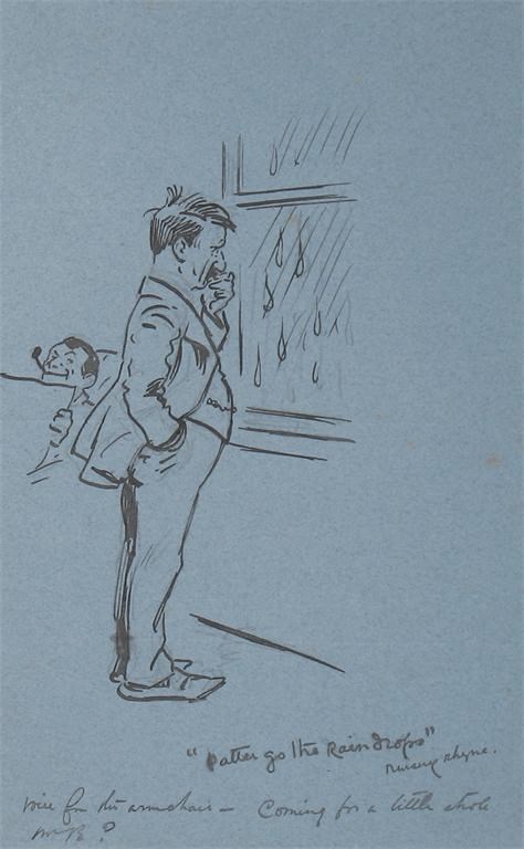 GORDON FREDERICK BROWNE (1858-1932): An album containing a large quantity of letters (many illustrated), pen and ink drawings, cartoons and ephemera (a quantity) Gordon Browne R.I. was the youngest son of Hablot K. Browne, better known as Phiz who illustrated many of Dickens' works. He was a member of the Royal Institute of Painters in Watercolours and the Royal Society of British Artists. He illustrated various editions of Shakespeare, Defoe, Bunyan and others. This album was compiled by Arnold Morris (the recipient of most of the letters) who was a fellow artist and close friend of Gordon Browne.