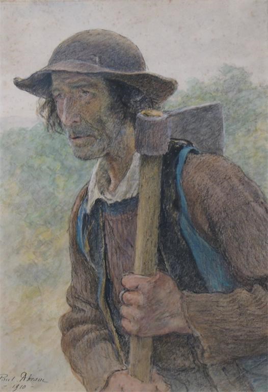 PAUL ABRAM (French 1854-1925): A Gleaner, signed and dated 1910, pastel, 44.5 x 30.5cm (17.5 x 12in)