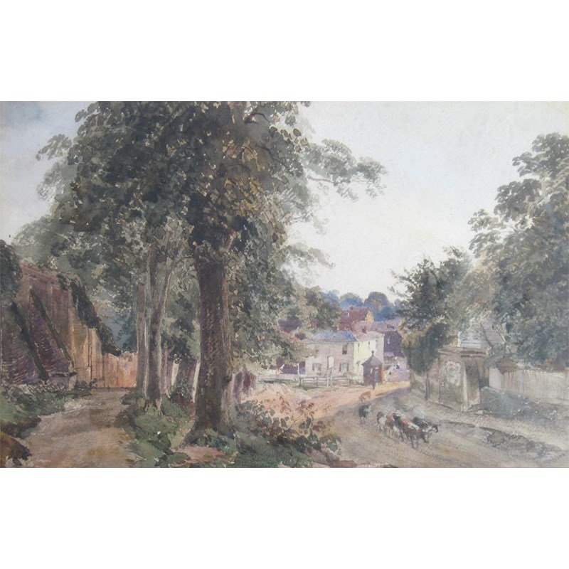 ATTRIBUTED TO RICHARD PRATCHETT NOBLE (fl.1830-1861): Cattle on a road, a town beyond, watercolour and pencil, 32.5 x 50cm (12.75 x 19.75in) ++ Good.