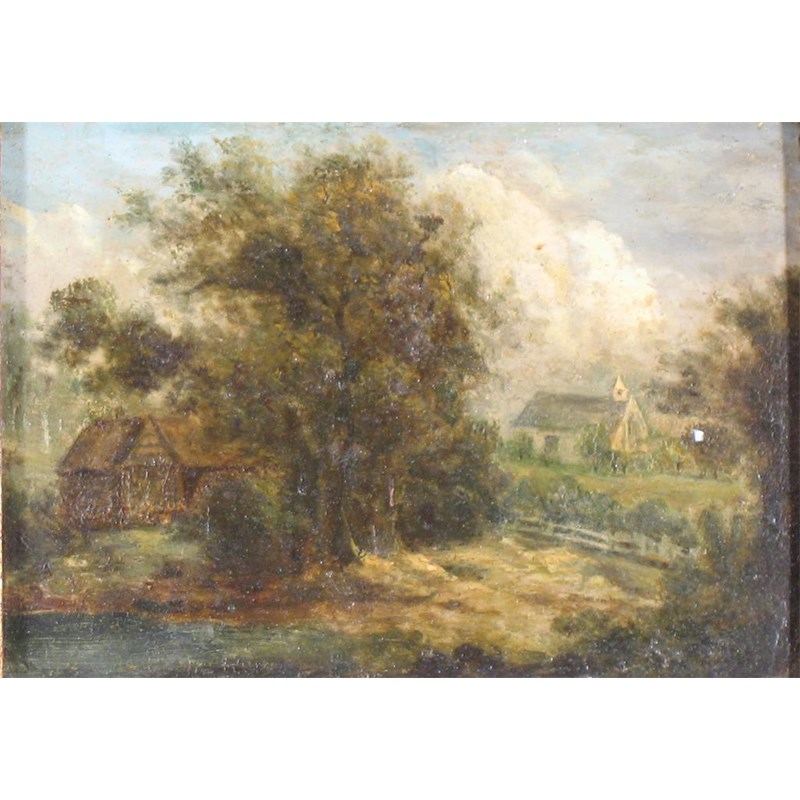 FLEMISH SCHOOL (18th century): A rural landscape, oil on copper, 10.5 x 14.5cm (4.25 x 5.75in) ++ Generally sound, but a bit scruffy, minor touching up.