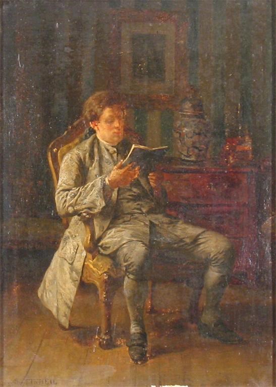 CONTINENTAL SCHOOL (19th century): A man in Regency dress reading in a chair