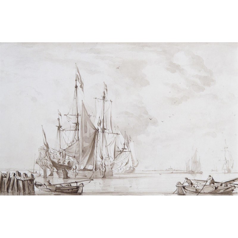 Dutch School 19th Century Ships at anchor drying their sails Pen
