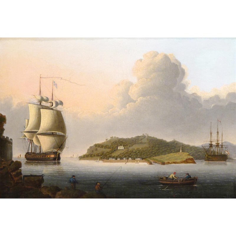 C. S. Bynon (c.1827) Frigate entering Plymouth Sound Signed and dated 1827 Oil on canvas 25.5 x...