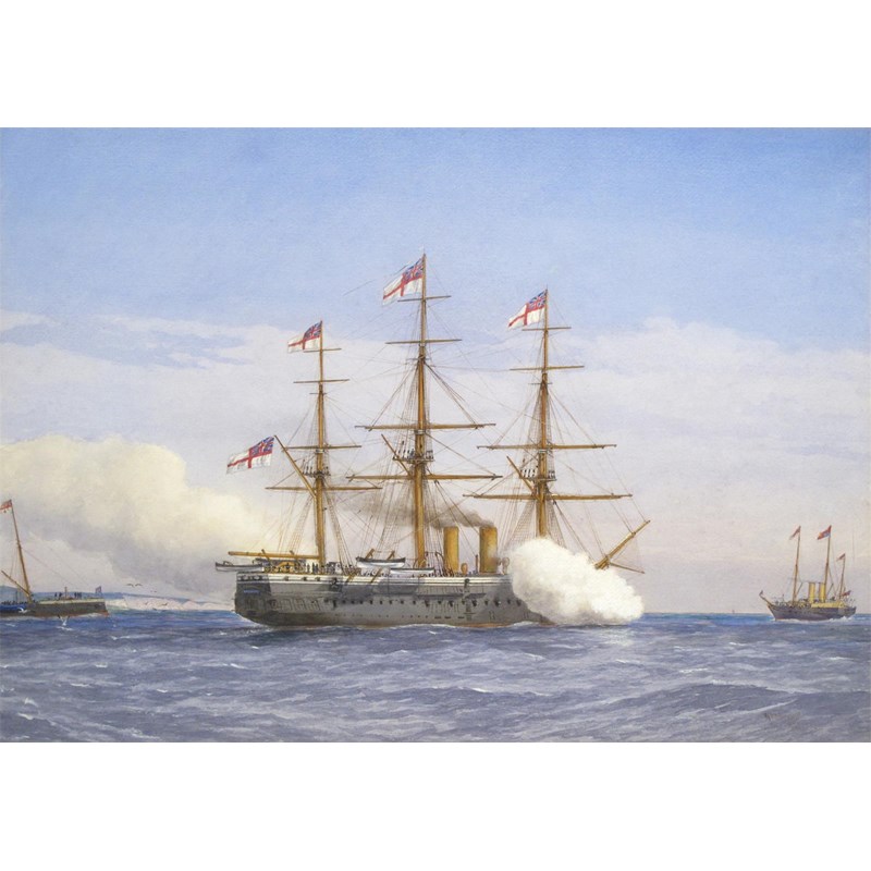 William Frederick Mitchell (1845-1914) H.M.S. Bacchante with H.M. yacht Osborne possibly off the...