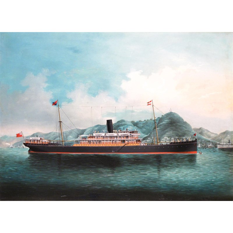 Chinese School c.1920 S.S. St. Albans moored in Hong Kong Harbour Oil on canvas 43 x 59cm; 17 x...