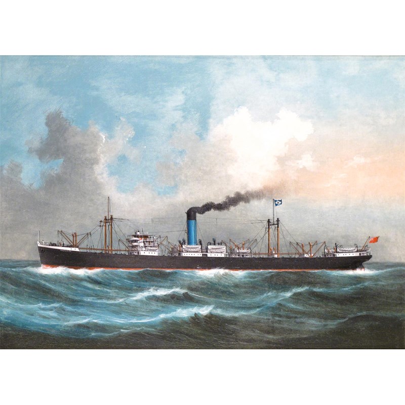 Chinese School early 20th Century Blue Funnel liner S.S. Philoctetes at sea Remains of Hong Kong...