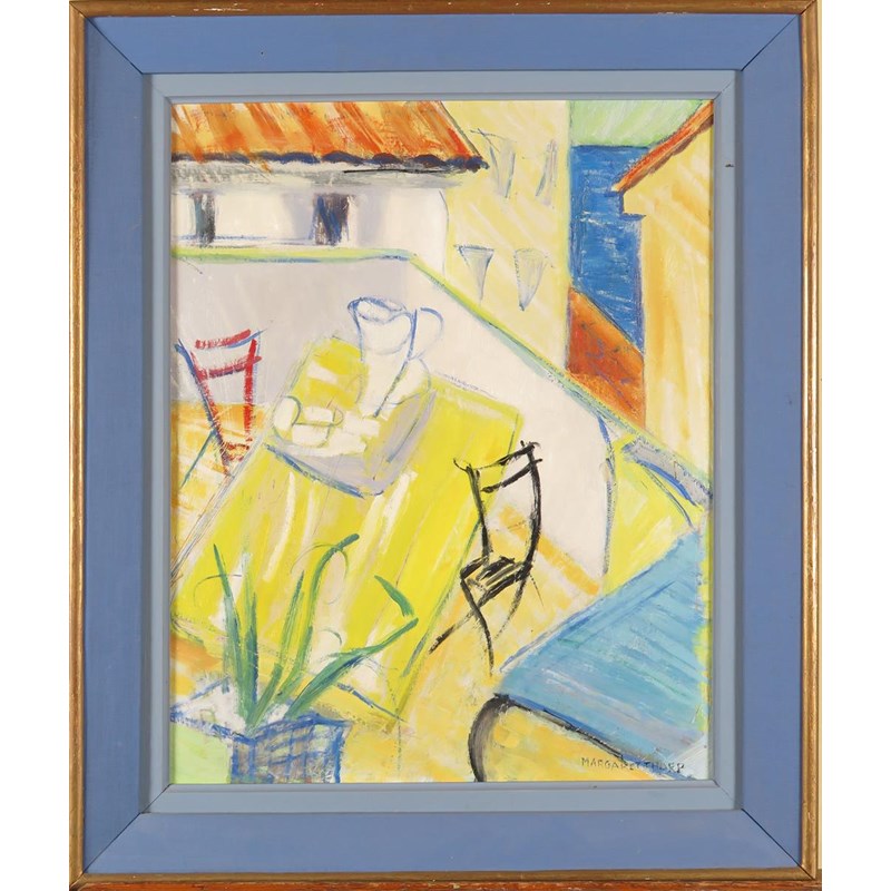‡Margaret Thorp (20th Century) The terrace Signed Oil on board 49 x 39cm