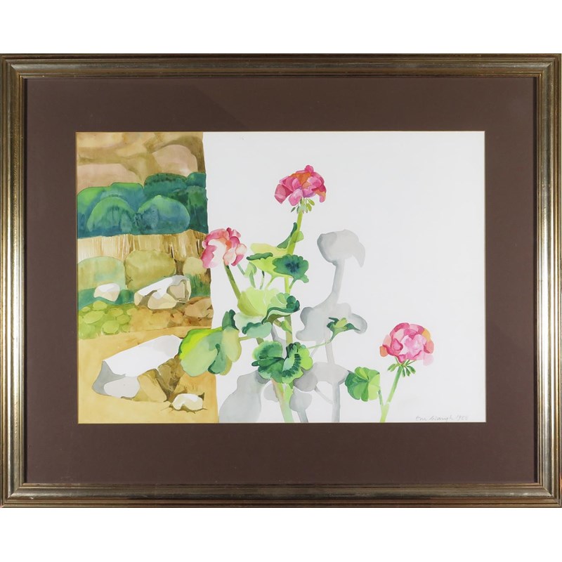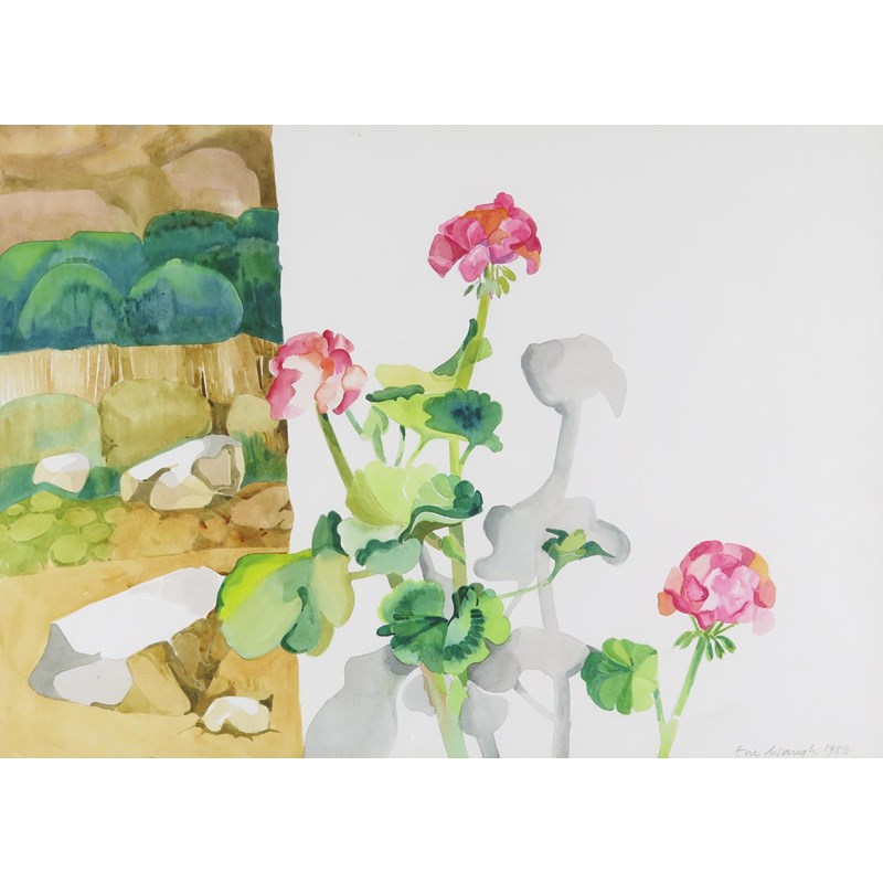 ‡Eric Waugh (20th Century) Geraniums on a windowsill Signed and dated 1980 Watercolour 53 x 74cm