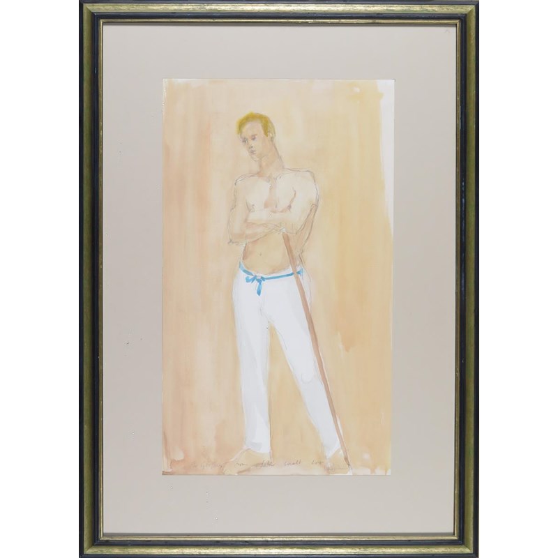 ‡John Miller (Cornish 1931-2002) Portrait of a man standing Signed and dedicated For Geoffrey...