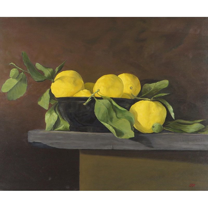 ‡Jonathan Pocock (b.1967) Lemons Signed with initials Oil on canvas 51 x 61cm Provenance: Roy...