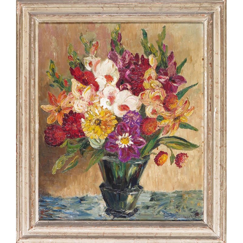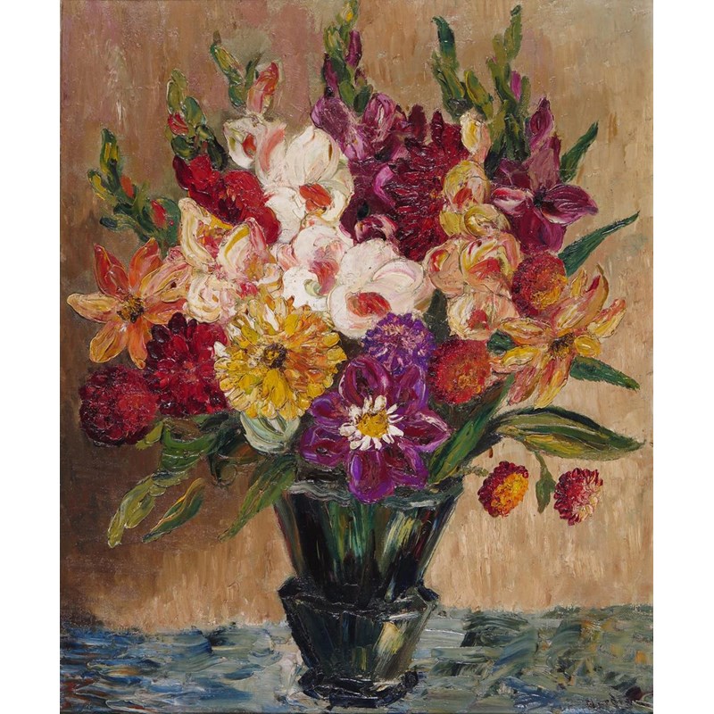 Modern British School (20th Century) Still life of flowers in a vase Signed indistinctly Oil on...