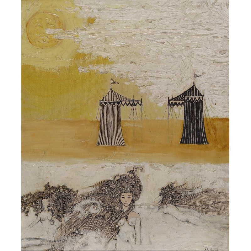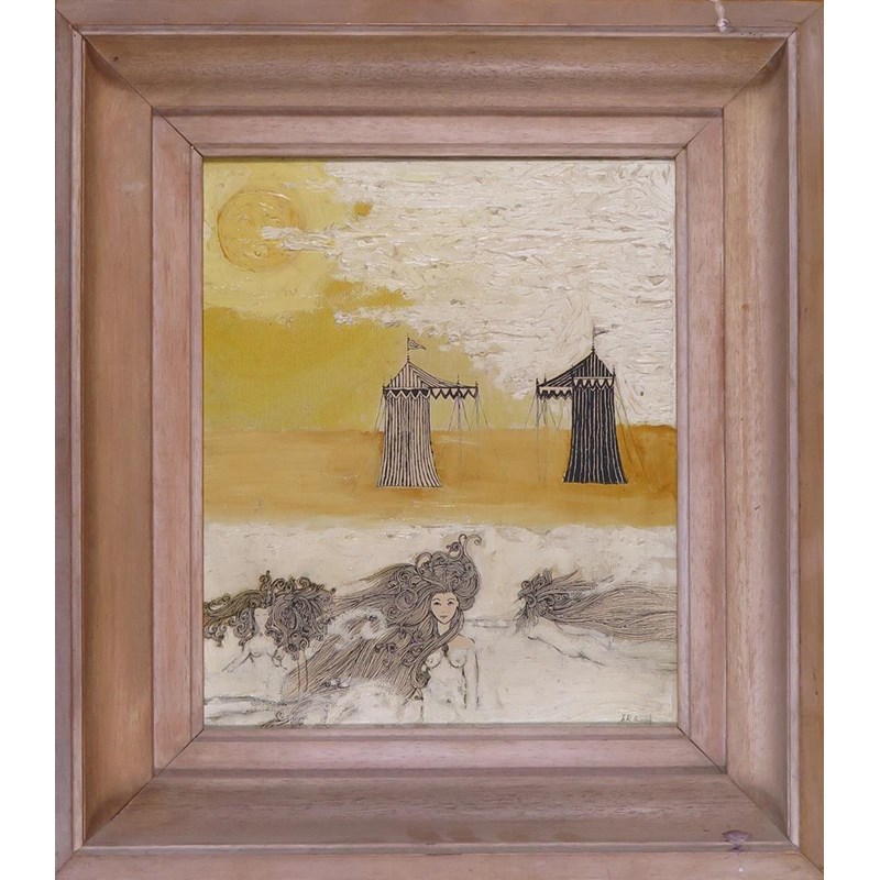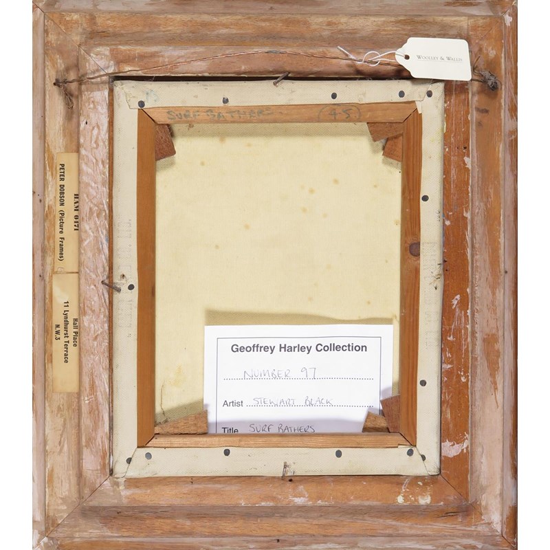 ‡Stewart Black (Scottish b.1938) Surf Bathers Signed Oil on canvas 30 x 25cm