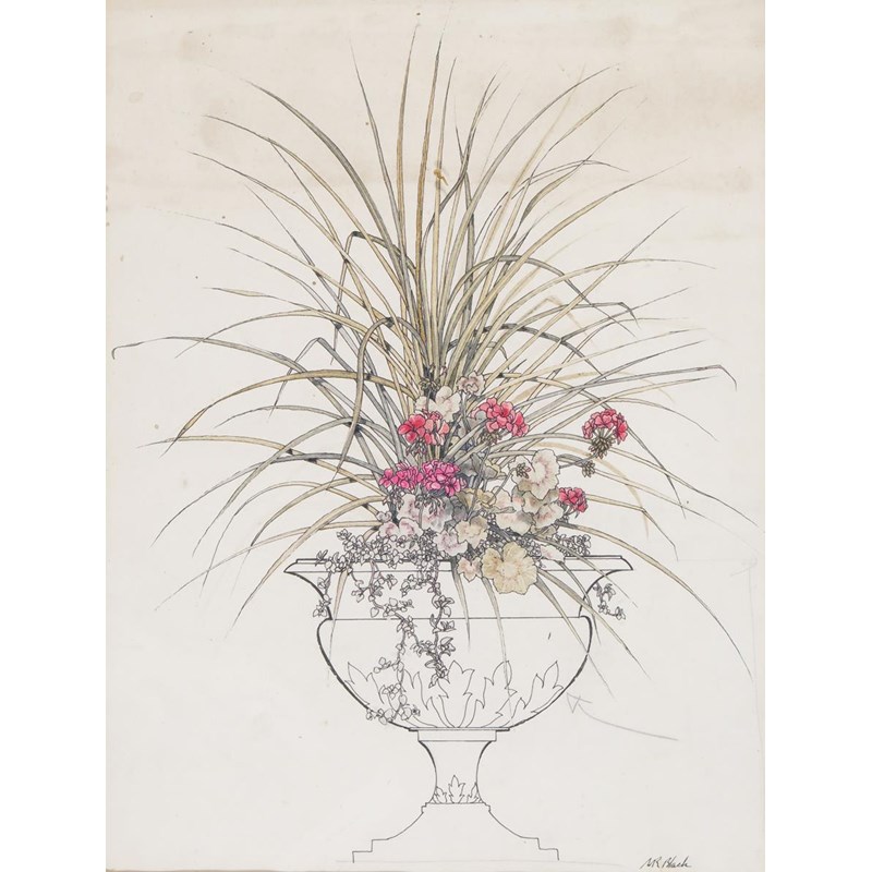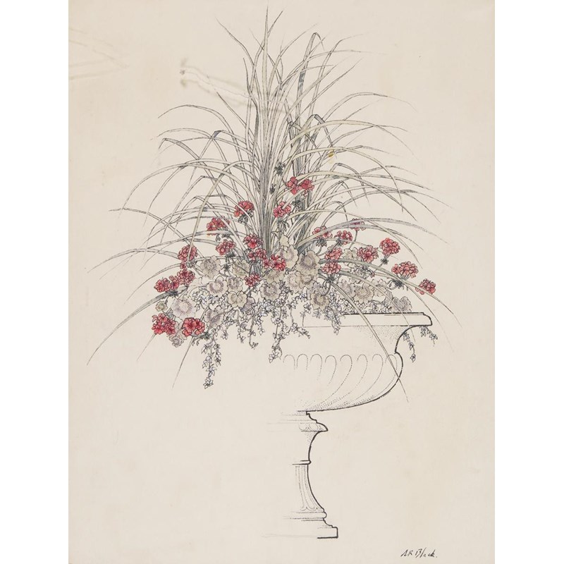 ‡Stewart Black (Scottish b.1938) Studies of Geraniums in an urn A pair
