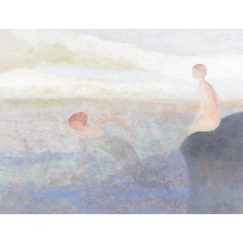 ‡David Brayne RWS (b.1954) The Bathers Signed Mixed media 61 x 80cm Provenance: Royal Academy...