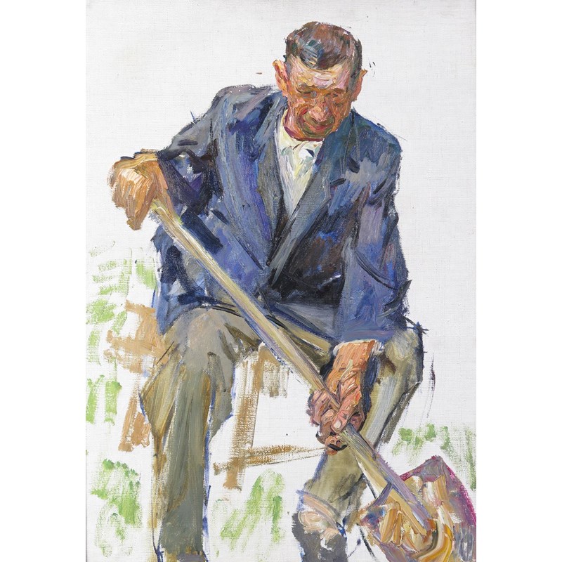 Russian School 20th Century Seated workman holding a spade Oil on canvas 69 x 49cm