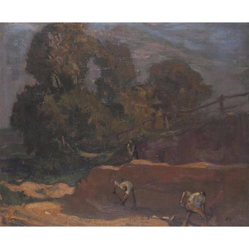 ‡Sir Frank Brangwyn R.A. (1867-1956) The sandpit Signed with initials Oil on canvas laid on board...