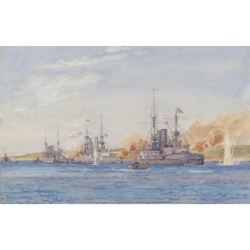 A pair, both signed, titled Suvla Bay and dated 1915, also inscribed in pencil with details of the battle and names of the ships