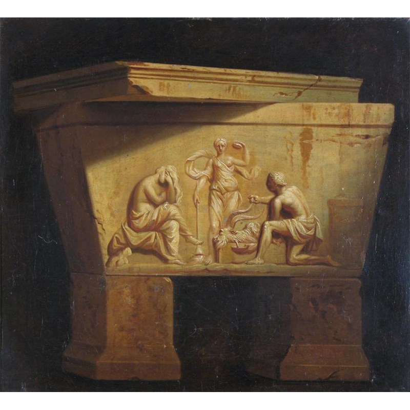 Italian School 19th Century A Roman sarcophagus Oil on canvas 30 x 33cm; 12 x 13in Old lining