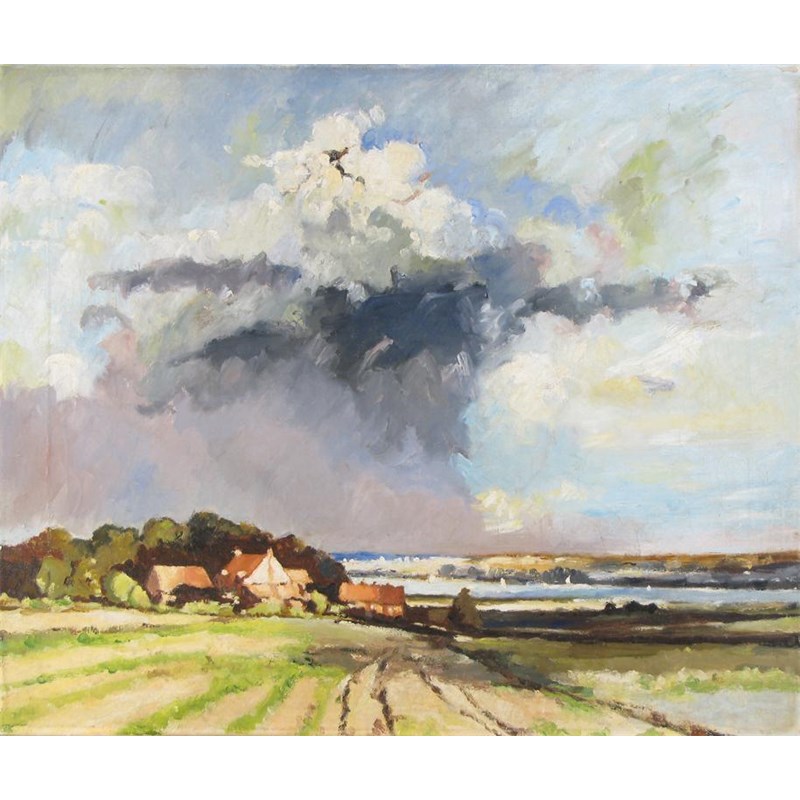 Stormy skies over a coastal landscape