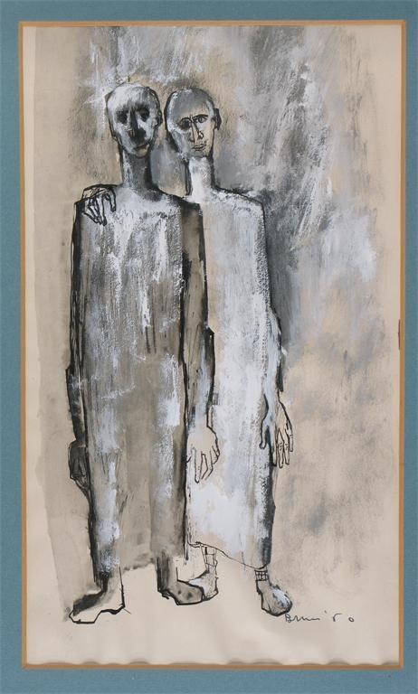 Bruni (20th Century) Friends Signed and dated 60 Pen ink and gouache 33 x 19cm; 13 x 7½in