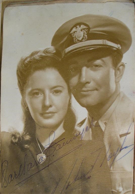 Autograph Book from the 1940s including signed photographs of Greer Garson, Barbara Stanwyck, Michael Taylor, Ronald Reagan, Orson Wells, Mickey Rooney, etc., mostly pasted in, one or two personally addressed, a few loose, original covers.