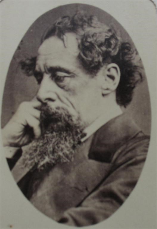 Victorian cabinet photograph album of c.50 portraits including Charles Dickens, Queen Victoria, Disraeli, Stanley (Dean and Lord), etc. some tinted, window mounted in a contemporary album, gilt, a.e.g., bookplate, by Maull & Polyblank, London and others, (overall c.20 x 16cm).