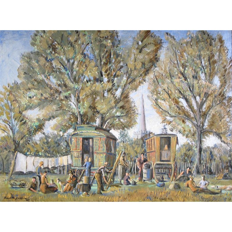 Karl Hagedorn (1889-1969) Gypsy caravans Signed and dated 47 Oil on canvas 59 x 80cm; 23¼ x 31½in