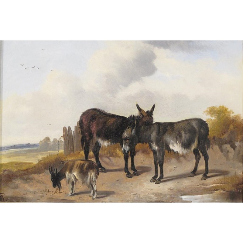 Attributed to John Alfred Wheeler (1852-1932) Donkeys and a goat in a landscape Signed with...