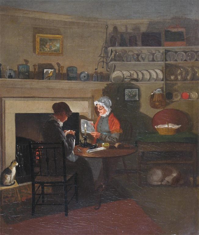 Attributed to Nicholas Condy Interior scene with two women by a fire Oil on canvas 30 x 25cm; 11½...