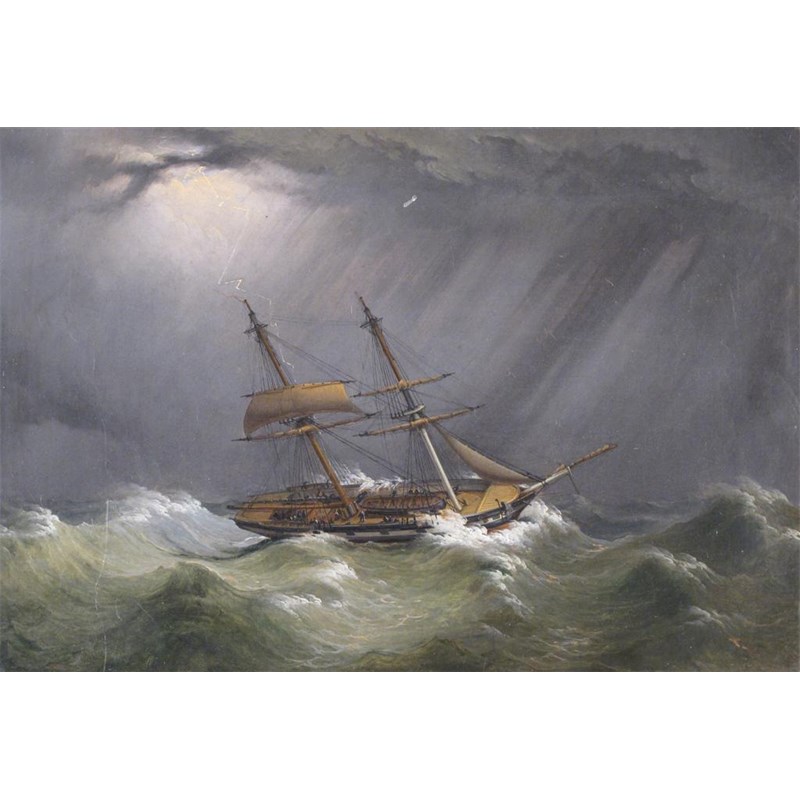 A brig of war in heavy seas
