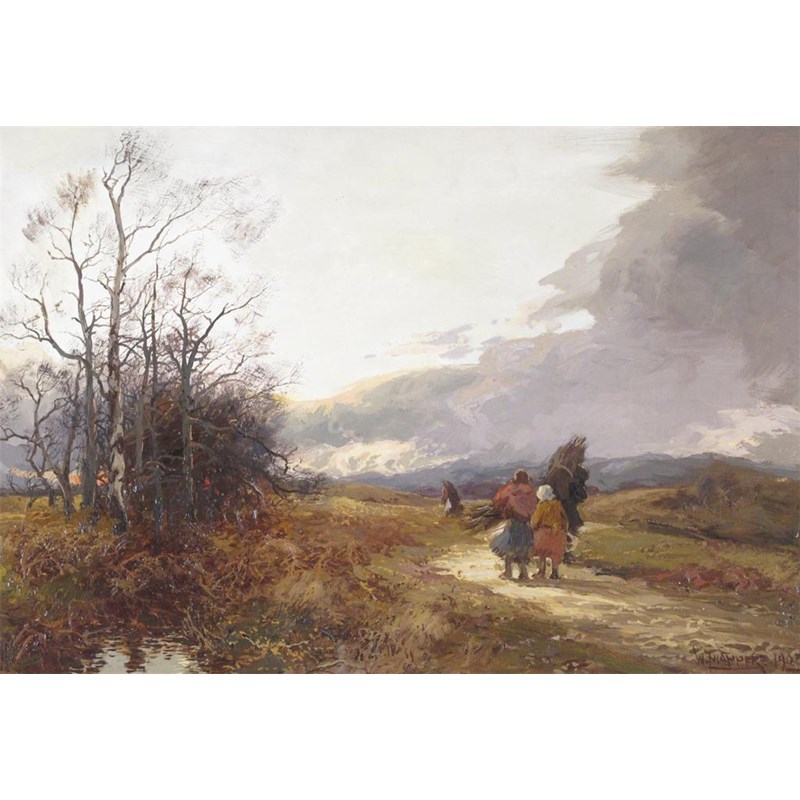 William Manners (1860-c.1940) An autumnal landscape with rustics gathering wood Signed and dated...