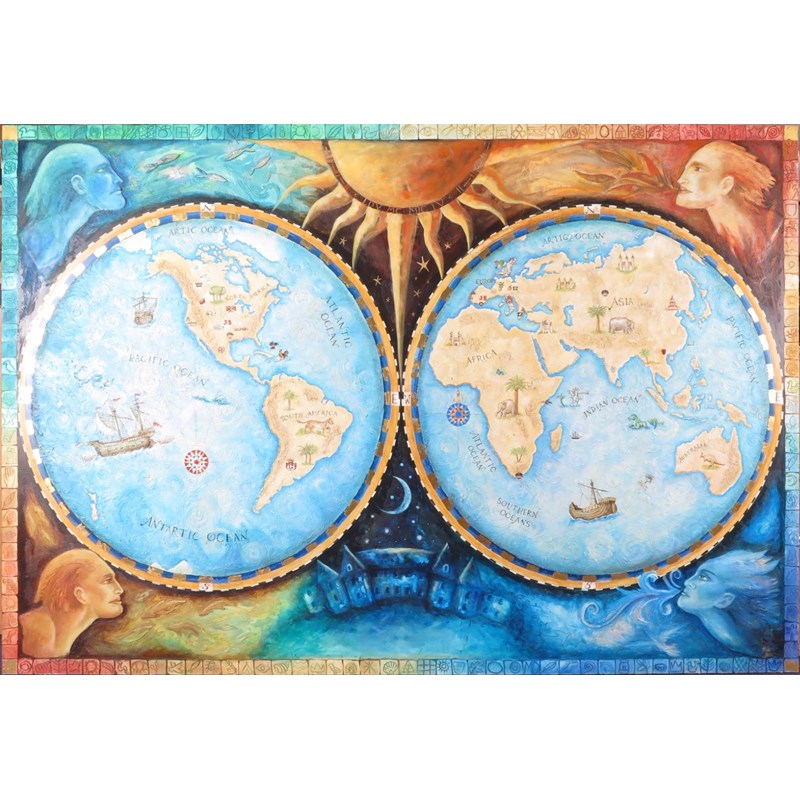English School 20th Century World map with distilleries and other notations Mixed media on panel...