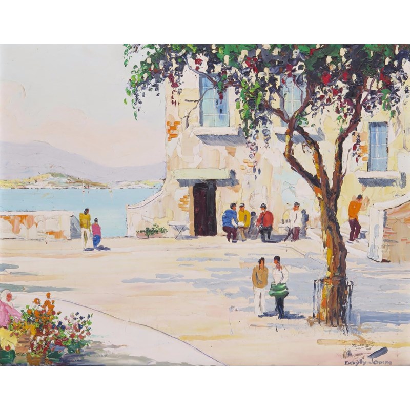 ‡Cecil D'Oyly-John (1906-1993) Harbour scene near St. Maxime Signed Oil on board 45 x 55cm