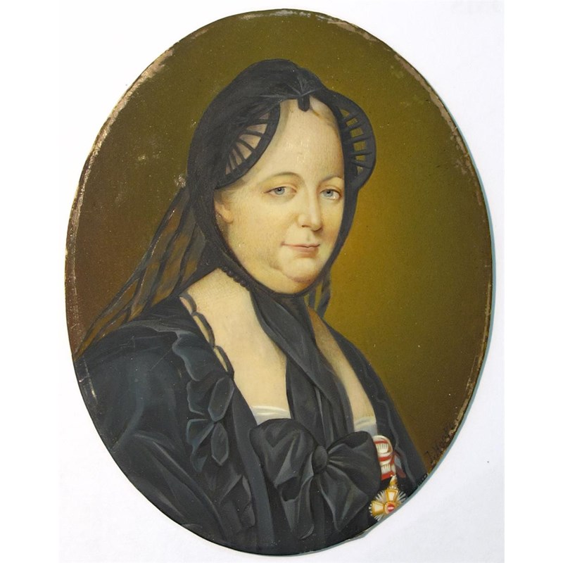 λ J. Hooke (19th Century) AMENDED Empress Maria Theresa after Joseph Ducreux Signed below mount...
