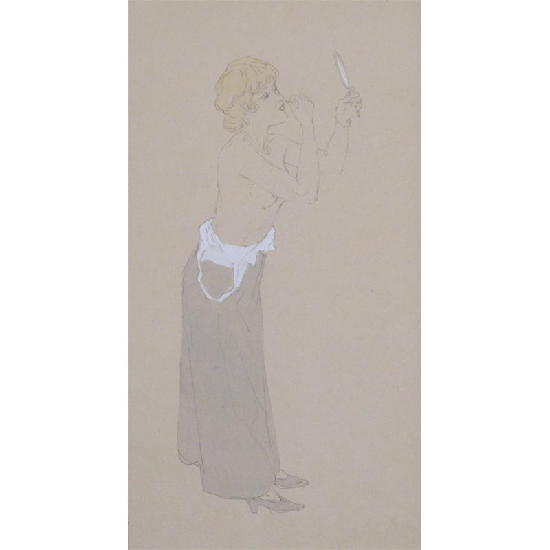 Raphael Kirchner (Austrian 1876-1917) Making up Watercolour over pencil 38.5 x 21cm; 15¼ x 8¼in...