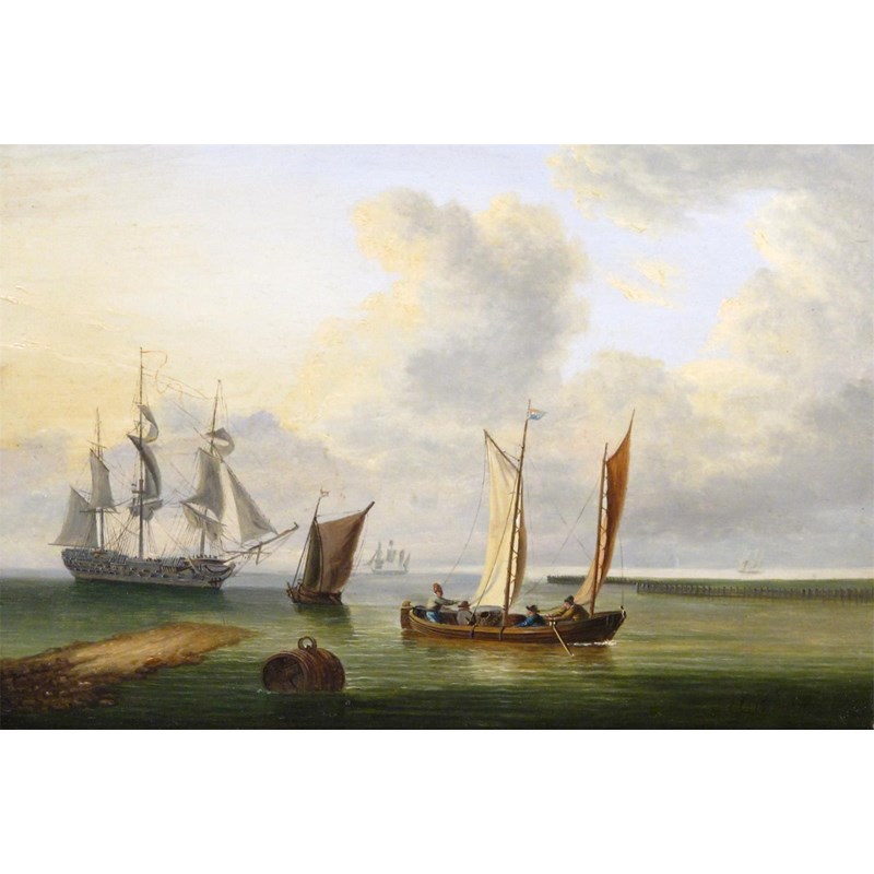 Charles Martin Powell (1775-1824) Dutch fishing boats and a three-master off the coast Signed