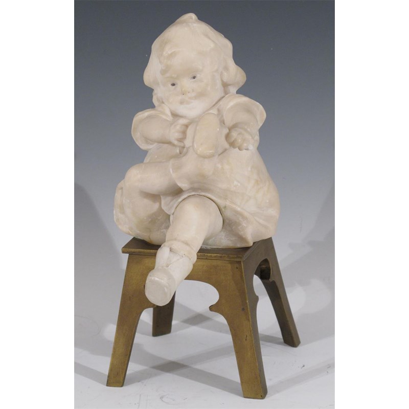 ‡Juan Clara Ayats (Spanish 1875-1958) A seated child putting on shoes Signed on bronze chair...