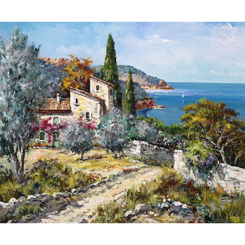 ‡Nicole le Guen (20th Century) Riviera in summer Signed Oil on canvas 46 x 55cm; 18 x 21½in