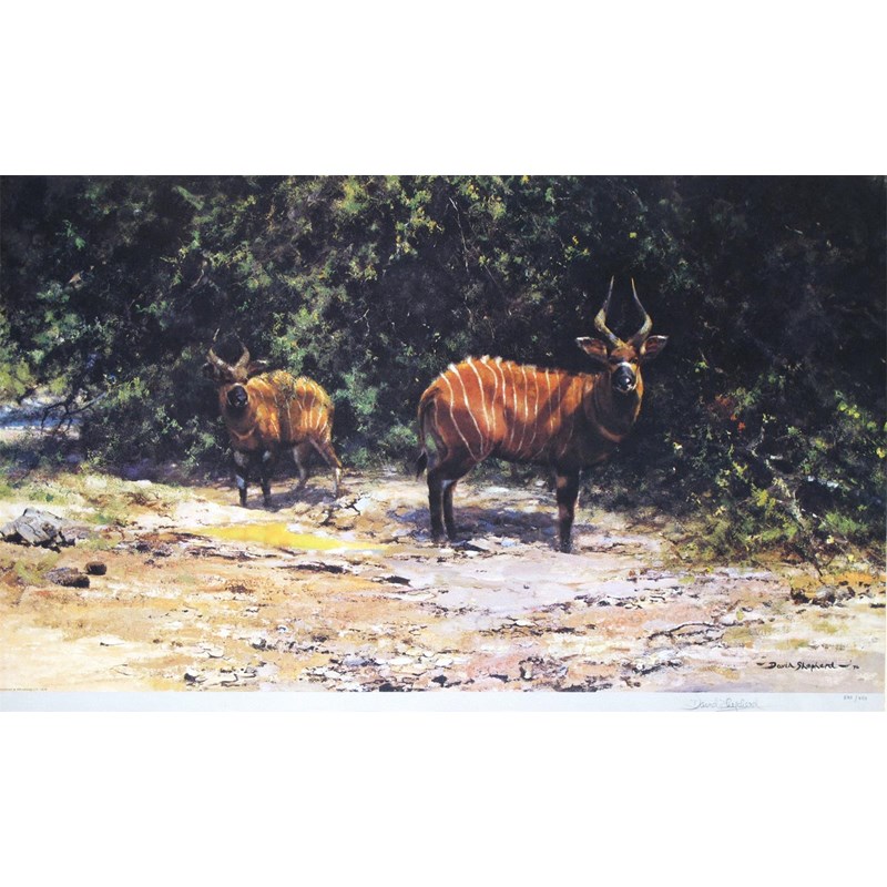 ‡David Shepherd (b.1931) Bongos in the shade Signed and numbered 530/850 Reproduction 45 x 74cm;...
