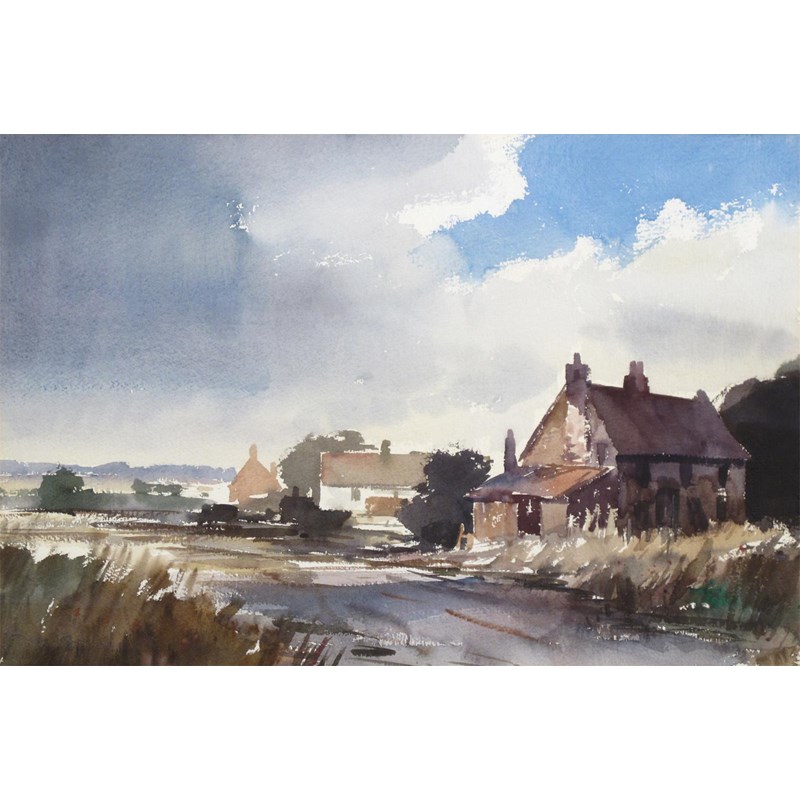 ‡Roy Petley (b.1950) Country cottages by a river Signed Watercolour 36 x 53cm; 14 x 21in Lot...