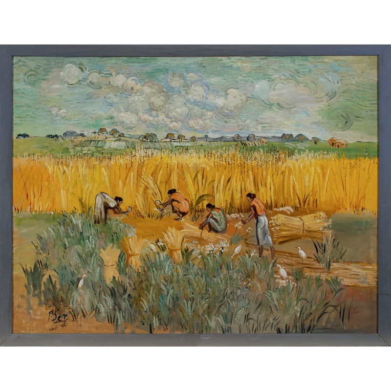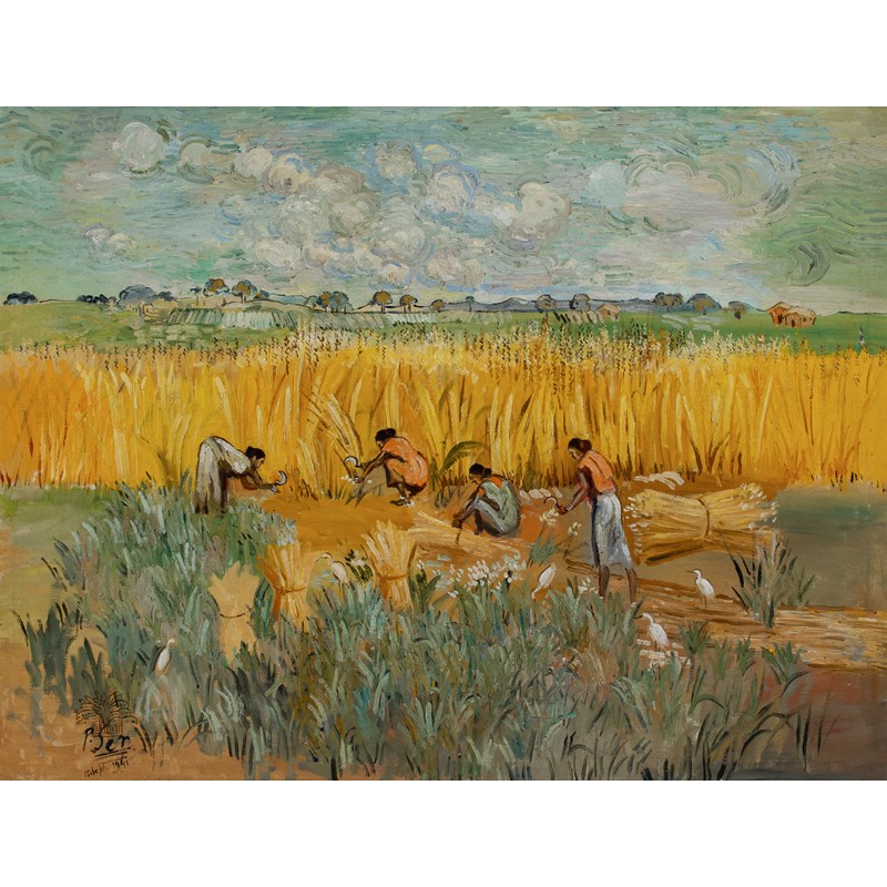 Ernest Cecil Marchant was Principle of Daly College in Indore from 1939-1946, and was accompanied to India with his wife Margaret and their two daughters Alison and Lesley. In 1940 Marchant appointed a young Paritosh Sen as Art Master at the school, and Margaret's letters mention receiving drawing and painting lessons from him. Marchant family tradition says that it was Ernest who introduced the work of Van Gogh to Sen through reproductions, and the influence is clear in The Reapers (lot 553). Sen went on to form the highly influential Calcutta Group, the first Indian modernist artist collective, in 1943. This collection of Indian works were purchased by the Marchants directly from the artists and have passed by family descent to the present owner.