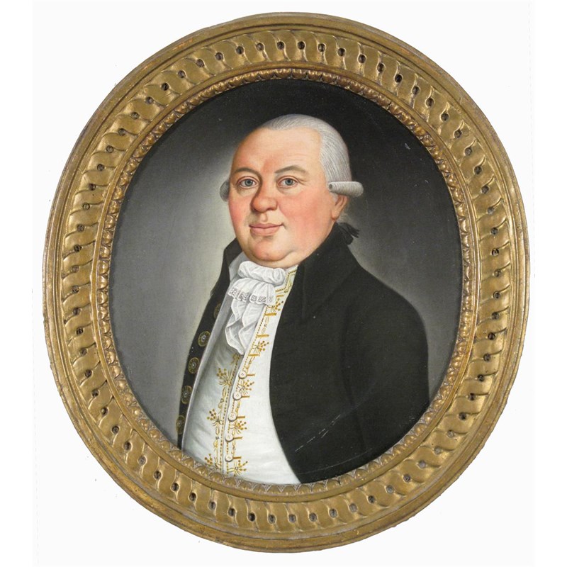 Portrait of a gentleman, head and shoulders, wearing a blue coat