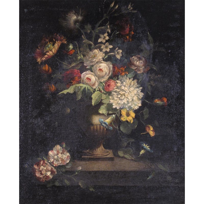 Style of Jean-Baptiste Monnoyer Still life of flowers in an urn on a shelf Oil on canvas 76 x...