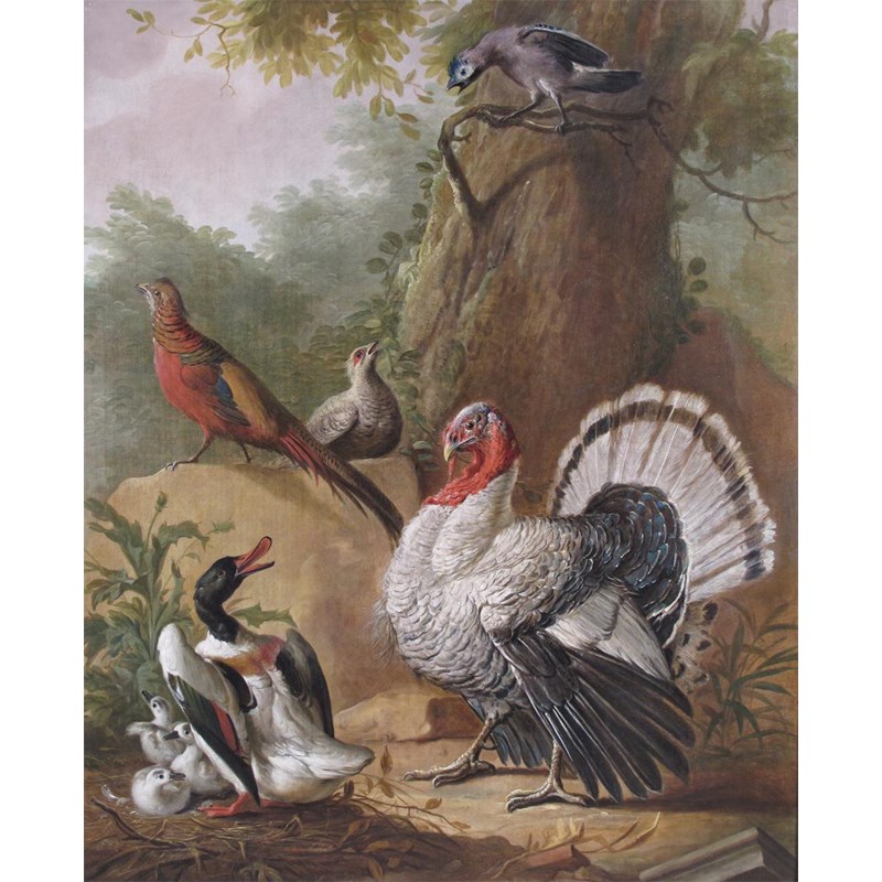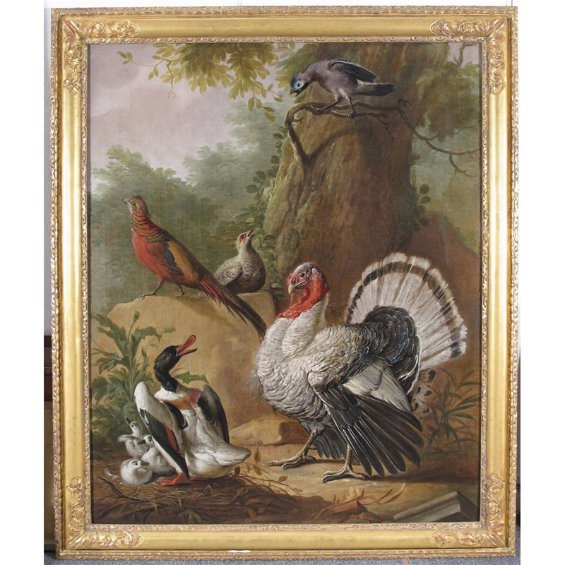 Attributed to Louis Leonart Hubner (d. 1769) A duck protecting its young from a turkey